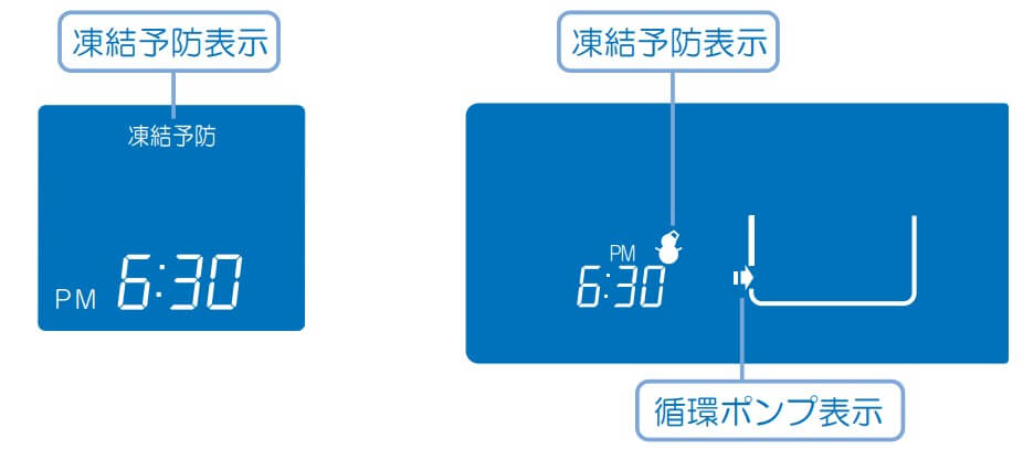 循環ポンプが自動的に浴槽の水を循環させ、凍結を予防します。